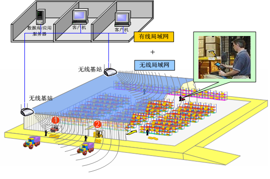 下圖是一個(gè)典型的無線倉儲(chǔ)系統(tǒng)網(wǎng)絡(luò)設(shè)計(jì)方案,用戶需要在現(xiàn)有的有線(局域)網(wǎng)絡(luò)基礎(chǔ)之上將其延伸至倉庫現(xiàn)場(chǎng),使得無線網(wǎng)絡(luò)信號(hào)通過接入點(diǎn)的部署覆蓋需要的區(qū)域,現(xiàn)場(chǎng)操作者使用移動(dòng)終端設(shè)備可以實(shí)時(shí)與后臺(tái)系統(tǒng)進(jìn)行數(shù)...