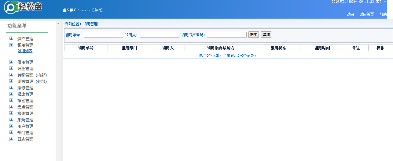 系統(tǒng)里的用戶管理功能實(shí)現(xiàn)資產(chǎn)分類(lèi)管理,根據(jù)資產(chǎn)的狀況,進(jìn)行內(nèi)部管理以及外部管理。系統(tǒng)管理員具有資產(chǎn)管理進(jìn)行領(lǐng)用管理、借用管理、歸還管理、內(nèi)部轉(zhuǎn)移管理、外部調(diào)撥管理、資產(chǎn)報(bào)廢管理、資產(chǎn)報(bào)警管理、資產(chǎn)盤(pán)點(diǎn)...