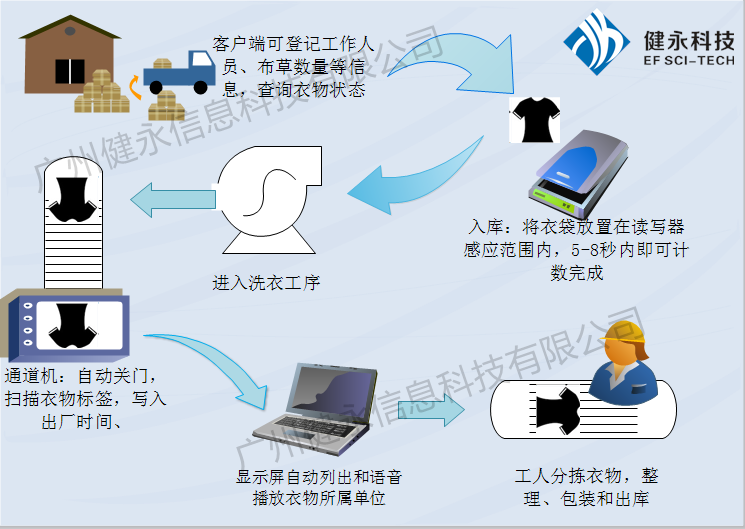 • 該方案是通過(guò)在每一件布草上縫制一顆條形狀的電子標(biāo)簽,電子標(biāo)簽中擁有全球唯一標(biāo)識(shí)碼,即每件布草將擁有唯一的管理標(biāo)識(shí),直至布草被報(bào)廢(標(biāo)簽可重復(fù)使用,但不超過(guò)標(biāo)簽本身使用壽命)。在整個(gè)布草使用、洗滌管理中...